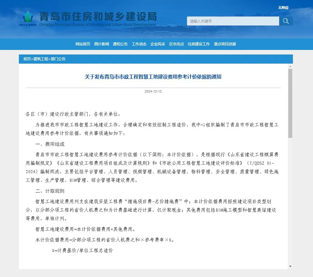 集團(tuán)牽頭參編的《青島市市政工程智慧工地建設(shè)費(fèi)用參考計(jì)價(jià)依據(jù)》正式發(fā)布