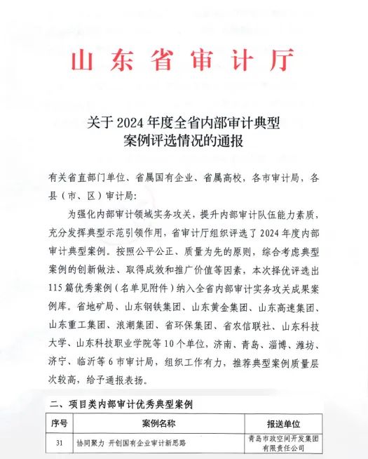 集團(tuán)研究型審計(jì)初獲成果——獲評2024年度全省內(nèi)部審計(jì)優(yōu)秀典型案例