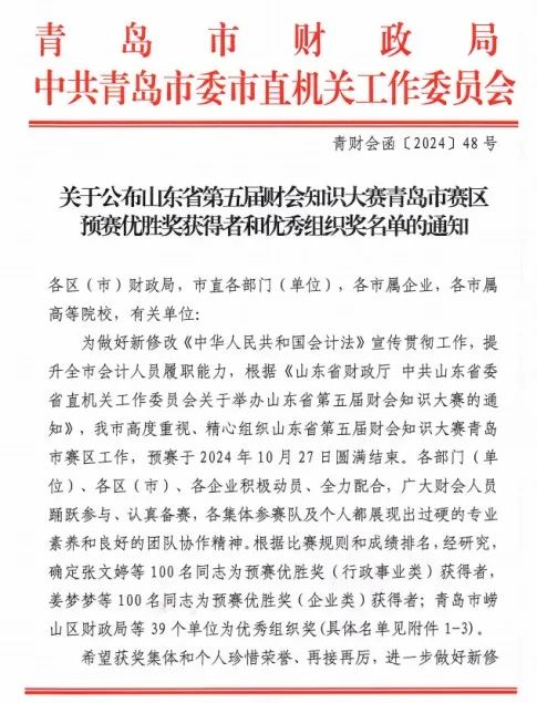 集團(tuán)在山東省第五屆財(cái)會(huì)知識大賽青島市賽區(qū)獲得佳績