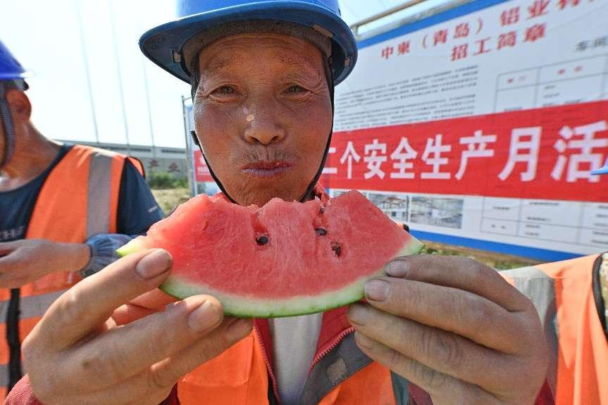 高溫來襲 不懼“烤驗(yàn)”——道橋公司膠州市北部基礎(chǔ)設(shè)施提質(zhì)升級(jí)項(xiàng)目部開設(shè)“清涼驛站”為施工人員祛暑降溫