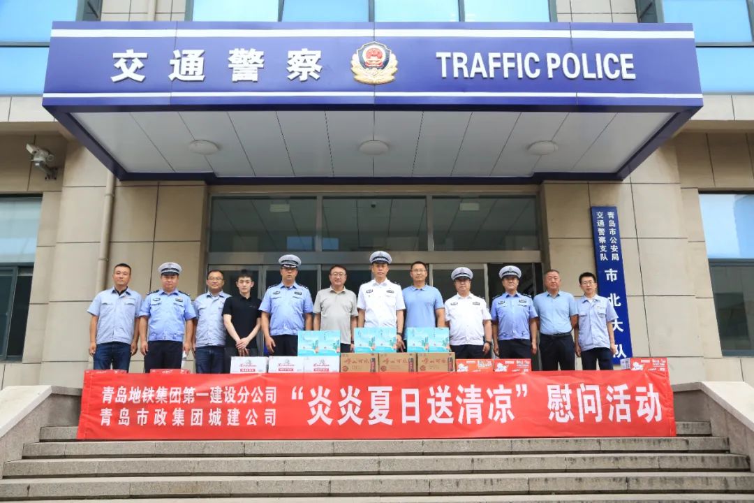 7月13日,青島市政集團(tuán)城建公司聯(lián)合青島地鐵集團(tuán)第一建設(shè)分公司開展黨建聯(lián)建。城建公司總經(jīng)理韓業(yè)利一行到青島市公安局交通警察支隊(duì)市北大隊(duì)走訪慰問一線交警,為堅(jiān)守崗位的交警送去一份“清涼”。1970-01-01 -
