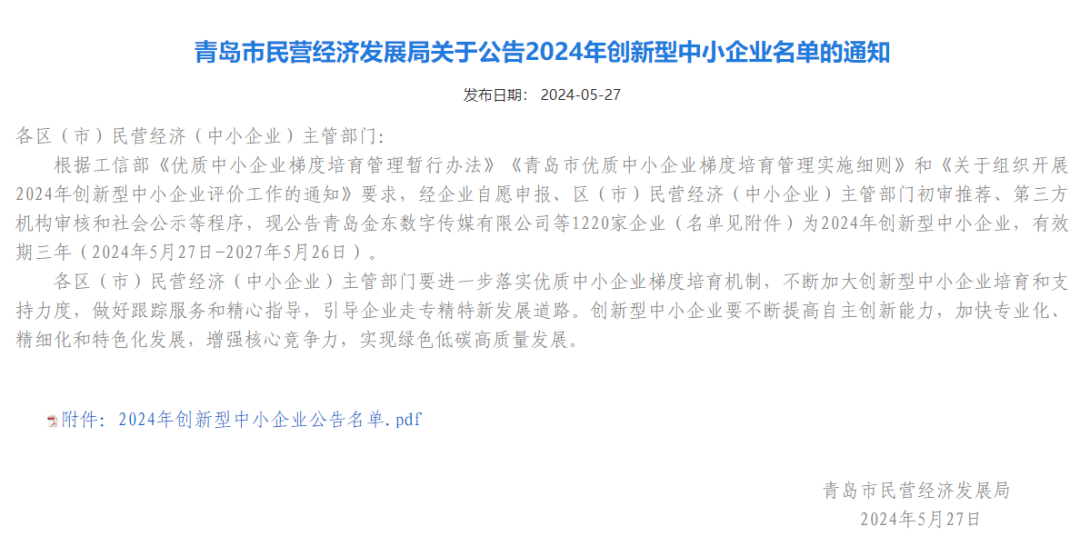 城市物業(yè)檢測中心入選青島市2024年創(chuàng)新型中小企業(yè)名單