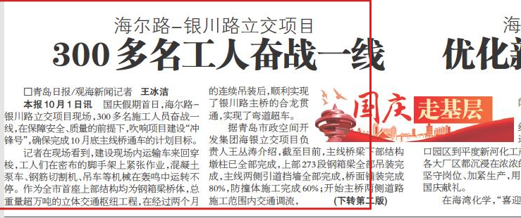 【青島日報頭版】海爾路-銀川路立交項目——300多名工人奮戰(zhàn)一線