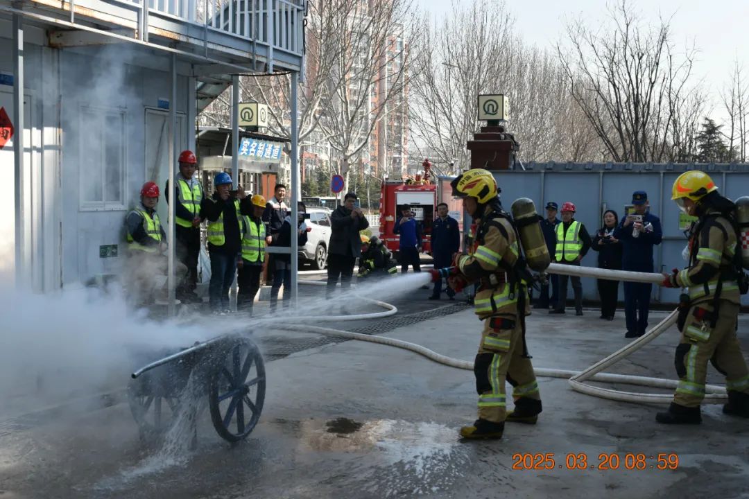 隨后,消防員們現場進行了火災撲救實戰(zhàn)演示。通過模擬火災場景,講解高壓水槍、正壓式空氣呼吸器等專業(yè)化消防裝備的使用方法;帶大家體驗高負荷救援裝備,深入理解消防作業(yè)強度及技術標準,進一步增強了全體人員的消防安全意識。培訓座談環(huán)節(jié),消防員系統(tǒng)講解了滅火器分類標準及操作規(guī)范,幫助參訓人員掌握“見火不慌、抬手即滅”的救火技能,有效提升火災初期響應效率。