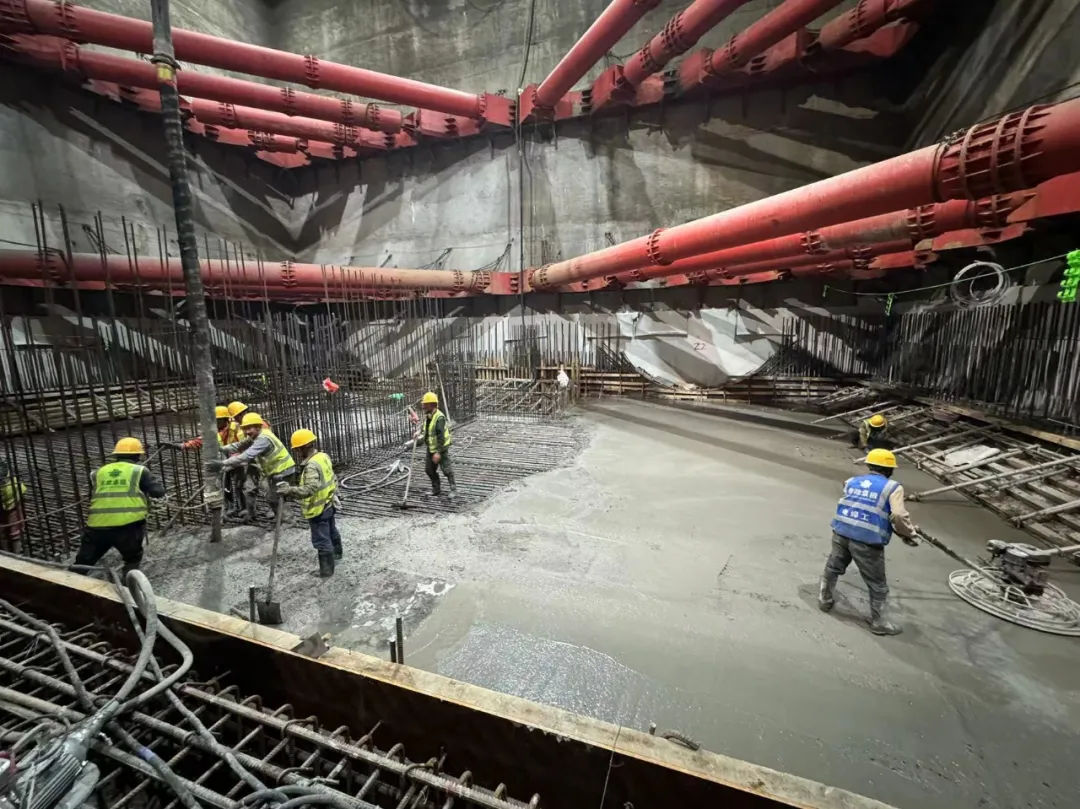 南接滄口站,北連文安路站,是7號(hào)線二期工程南段第二座車站,其建成將進(jìn)一步提升李滄及青島北站周邊的交通樞紐地位。“五一”假期期間,項(xiàng)目部全體人員堅(jiān)守奮戰(zhàn)在施工一線,100余名工人進(jìn)行車站基坑開挖及結(jié)構(gòu)施工,項(xiàng)目于5月1日當(dāng)天對(duì)振華路站首段頂板進(jìn)行澆筑,累計(jì)澆筑方量600余方。振華路站首段結(jié)構(gòu)頂板安全封頂,標(biāo)志著項(xiàng)目主體結(jié)構(gòu)施工進(jìn)入全新階段,為后續(xù)進(jìn)入車站暗挖施工奠定了堅(jiān)實(shí)基礎(chǔ)。