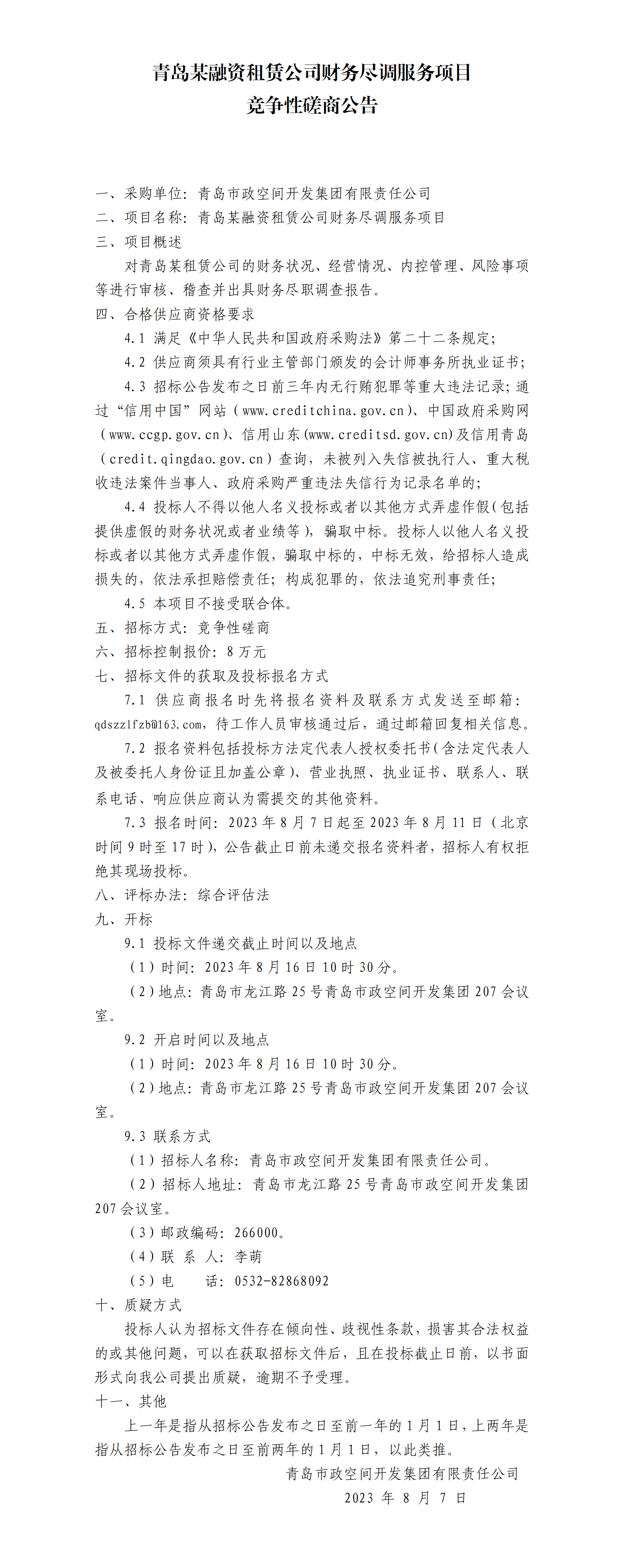 青島某融資租賃公司財(cái)務(wù)盡調(diào)服務(wù)項(xiàng)目 ? 2023-08-07 09:30:17 3167 打印 A- A+ 返回列表 上一篇: 中央商務(wù)區(qū)停車(chē)樓價(jià)值 下一篇: 財(cái)務(wù)決算審計(jì)項(xiàng)目中標(biāo)